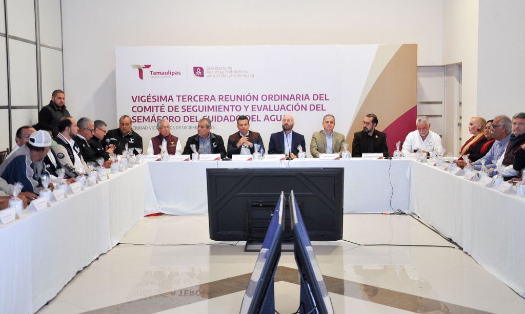 Ciudad Victoria, Tamaulipas.- La Secretaría de Recursos Hidráulicos para el Desarrollo Social dio a conocer la actualización del Semáforo del Cuidado del Agua en Tamaulipas, resultado de la Tercera Vigésima Reunión Ordinaria del Comité de Seguimiento y Evaluación, encabezada por el secretario Raúl Quiroga Álvarez y el presidente municipal de Ciudad Victoria, Eduardo Gattás Báez.