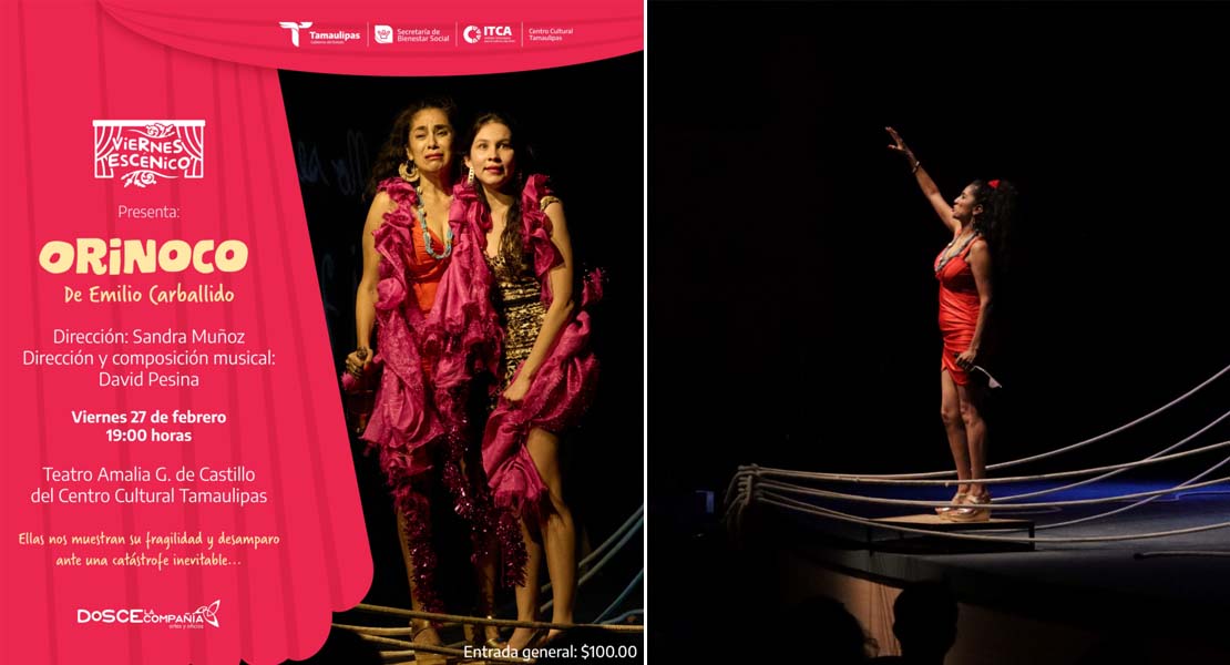 En un respaldo constante de la Secretaría de Bienestar Social de Tamaulipas, el director general del ITCA extendió la invitación al público en general para acudir este viernes 27 de enero a presenciar Orinoco, a cargo de la Compañía tampiqueña DOSCE, dirigida por la también actriz Sandra Muñoz.