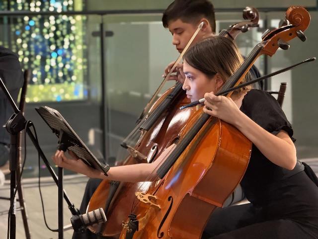 La velada contó con la destacada participación de la Orquesta del Noreste de Vivas Music University, bajo la dirección del Maestro Alejandro Vivas, quienes ofrecieron un repertorio que conectó profundamente con las familias asistentes y fue recibido con gran respuesta por parte del público.