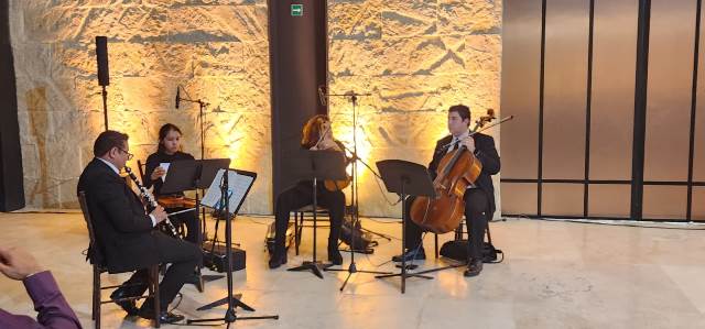 En la velada cultural participó con la armonía de cuatro instrumentos el ensamble de Maestros de la Orquesta de Cámara del Instituto Reynosense para la Cultura y las Artes, que dirige María Esther Camargo Félix.