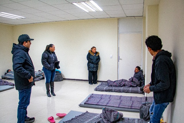 Personal de Protección Civil y del Sistema DIF da atención a 8 alojados, 6 masculinos y 2 femeninas, a quienes proporcionan una colchoneta y cobijas invernales, además de monitorear su salud y asistir su alimentación.