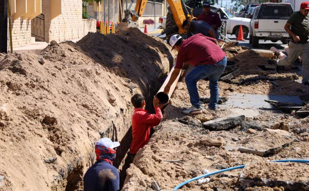 Reynosa, Tam.- La Comisión Municipal de Agua Potable y Alcantarillado de Reynosa lleva a cabo trabajos de rehabilitación de drenaje sanitario sobre la calle Allende, esquina con Guadalupe Victoria, en la Zona Centro.