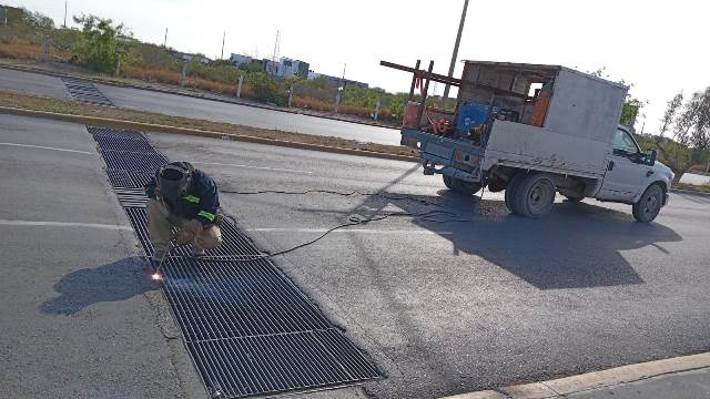 – Reparación de rejilla pluvial metálica en la avenida Encinos frente a Periférico.