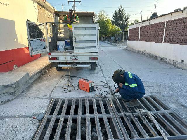 – Reparación de rejilla pluvial metálica dañada en la calle Quintana Roo de la colonia El Maestro.