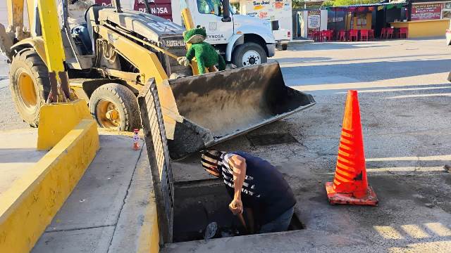 – Limpieza de desagüe en la colonia Carlos Cantú.