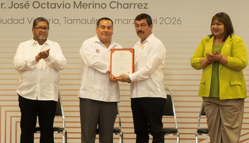 Ciudad Victoria, Tam.- El rector de la Universidad Autónoma de Tamaulipas, Dámaso Anaya Alvarado, encabezó la ceremonia de toma de protesta del Dr. José Octavio Merino Charrez como director de la Facultad de Medicina Veterinaria y Zootecnia “Dr. Norberto Treviño Zapata” para el periodo 2026-2030.