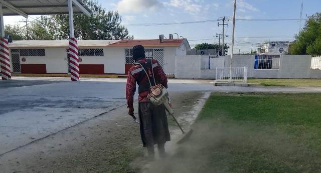 Reynosa, Tam.- El Gobierno de Reynosa que preside Carlos Peña Ortiz está realizando trabajo de saneamiento y mantenimiento en la escuela primaria Profesor Hermenegildo Castillo García, ubicada en el fraccionamiento Villas de La Joya, con la finalidad de evitar proliferación de fauna nociva y mejorar su aspecto.
