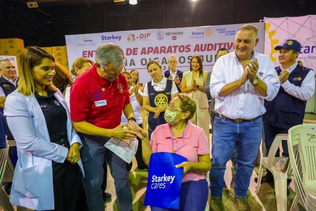 El Director de Starkey México, Alejandro Valdez León, dijo que hoy los beneficiados pueden vivir mejor a través de una mejor audición, recalcando que «solos no podemos hacer mucho, pero juntos podemos cambiar” y, a la par, en su mensaje, el Presidente del Club Rotario Reynosa, Marcos Olivares Olvera, destacó el trabajo en conjunto que se ha realizado a lo largo de los años, con el DIF de Reynosa y el Gobierno Municipal.