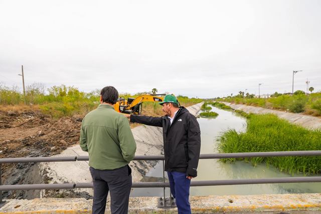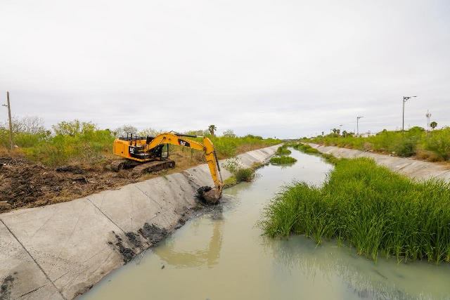 Reynosa, Tam.- Dando impulso permanente al programa de mantenimiento de la infraestructura hidráulica, el Presidente Municipal Carlos Peña Ortiz supervisó el desazolve del Dren Reynosa, en el tramo de las colonias Miguel Hidalgo, Vicente Guerrero, Ribereña, y Del Valle.