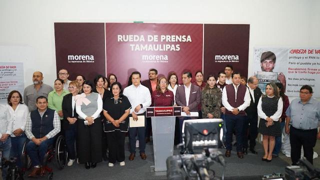 Cd. Victoria, Tam.- Desde el corazón de la Cuarta Transformación (Ciudad Victoria), Morena Tamaulipas respaldó y celebró la iniciativa de recolección de firmas encabezada por el diputado federal Sergio Gutiérrez Luna, mediante la cual se solicita a la Suprema Corte de Justicia de la Nación hacer justicia en el caso del ex gobernador prófugo Francisco García Cabeza de Vaca.