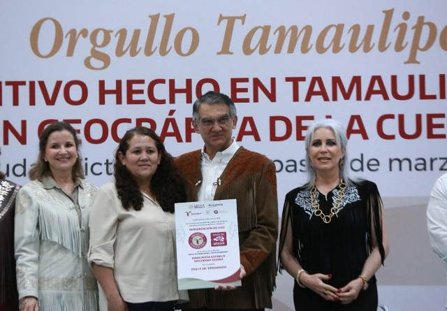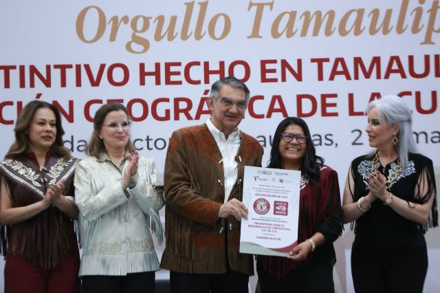 Por su parte, Guadalupe Itzi-Guari Hurtado Bañuelos, directora general adjunta de los Servicios de Apoyo del Instituto Mexicano de la Propiedad Industrial, en representación de Santiago Nieto, director general del IMPI, entregó al gobernador la Indicación Geográfica de la Cuera Tamaulipeca como un reconocimiento al símbolo máximo de la identidad tamaulipeca, que garantiza que esta prenda solo puede elaborarse bajo estándares que su propia comunidad productora define, evitando imitaciones, protegiendo el nombre y asegurando que el valor económico pertenezca al territorio donde nació.