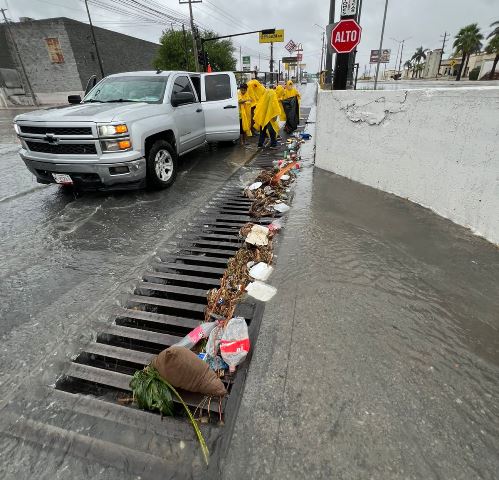 Se continúa con la limpieza de rejillas pluviales para evitar obstrucciones, además del desagüe de zonas inundadas con apoyo de equipos operativos del Ayuntamiento y COMAPA, para tranquilidad de las familias reynosenses.
