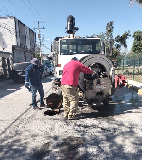 Reynosa, Tam.- Por instrucciones del Alcalde, Carlos Peña Ortiz, la Comisión Municipal de Agua Potable y Alcantarillado de Reynosa llevó a cabo trabajos de sondeo en la línea general de drenaje sanitario en diversos puntos de la ciudad, con el objetivo de mantener bajos los niveles de la red y prevenir derrames, encharcamientos y afectaciones a las familias.