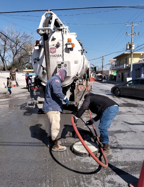 Reynosa, Tam.- Por instrucciones del Alcalde, Carlos Peña Ortiz, la Comisión Municipal de Agua Potable y Alcantarillado de Reynosa llevó a cabo trabajos de sondeo en la línea general de drenaje sanitario en diversos puntos de la ciudad, con el objetivo de mantener bajos los niveles de la red y prevenir derrames, encharcamientos y afectaciones a las familias.