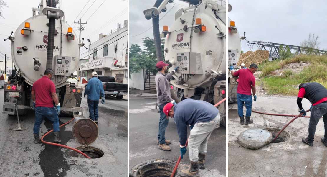 Reynosa, Tam.- Por instrucciones del alcalde, Carlos Peña Ortiz, la Comisión Municipal de Agua Potable y Alcantarillado de Reynosa llevó a cabo diversas maniobras de sondeo en la línea general de drenaje sanitario durante el pasado fin de semana, con el propósito de mantener bajos los niveles de línea y asegurar el adecuado funcionamiento de la red en distintos puntos de la ciudad.