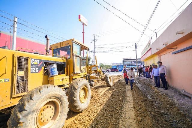 Reynosa, Tam.- El Presidente Municipal Carlos Peña Ortiz supervisó el avance en la construcción de la pavimentación de la calle Nuevo Laredo en la colonia Revolución Obrera, a donde acudió acompañado por funcionarios municipales y de la COMAPA.