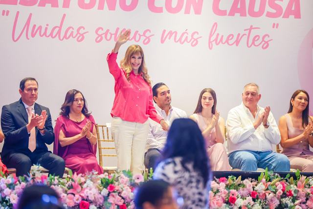 Reynosa, Tam.- Con un emotivo Desayuno con Causa, el Presidente Municipal Carlos Peña Ortiz, en colaboración con el Sistema DIF-Reynosa, reunió a personalidades y ciudadanos para apoyar la lucha contra el cáncer de mama. El evento, titulado «Unidas Somos Más Fuertes», contó con la participación de la Senadora de la República, Dra. Maki Ortiz, y del Cirujano Plástico Vidkar Iván Campos Martínez.