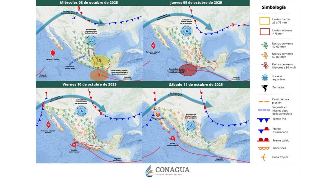 Ciudad Victoria, Tamaulipas.- La Coordinación Estatal de Protección Civil informa, que derivado de una zona de inestabilidad tropical procedente del Golfo de México, ocasionará un periodo de lluvias en el estado de Tamaulipas durante el periodo comprendido del martes 7 al sábado 11 de octubre de 2025, según lo dio a conocer el titular de la dependencia Luis Gerardo González de la Fuente.